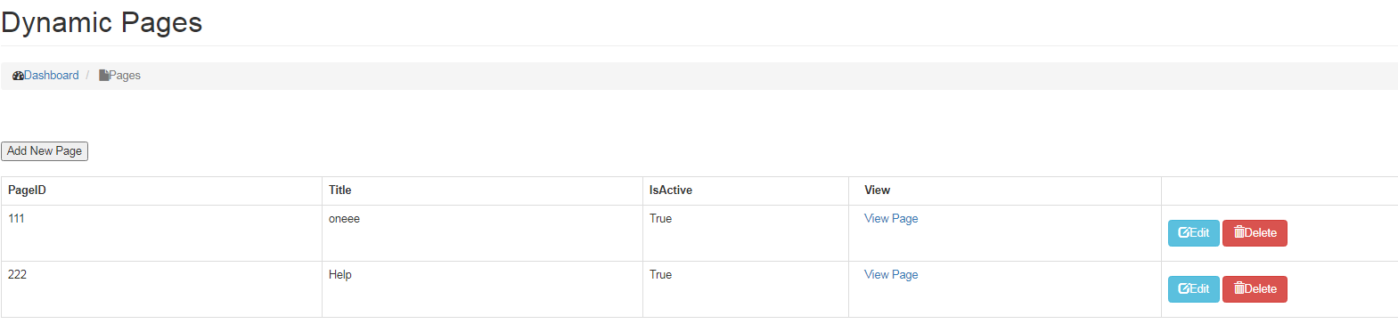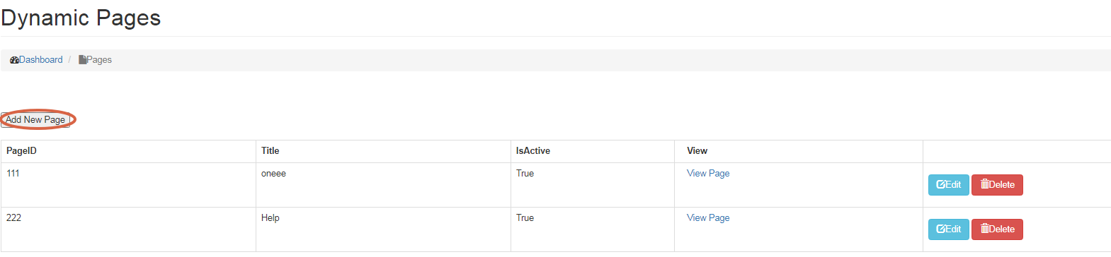 • To Delete Page, click on the Delete button next to Edit button.